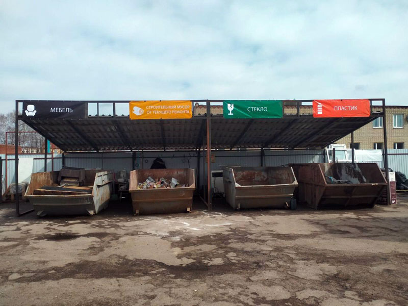 Контейнеры предназначены для: мебели, строительных отходов, стекла, пластика, бумаги, картона, веток, шин, бытовой техники и пленки.