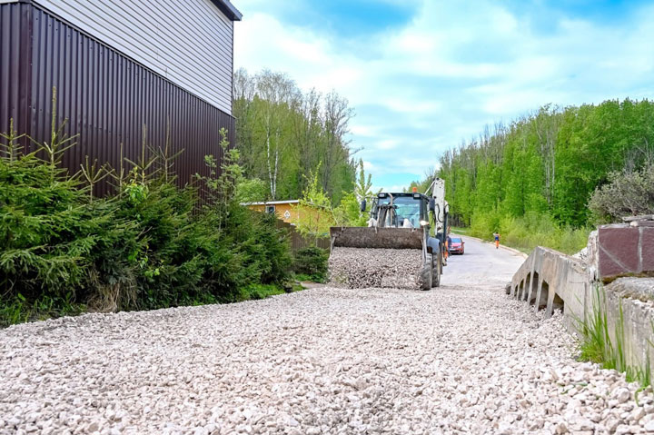 Сейчас дорогу засыпают щебнем, а после выполнят асфальтирование и нанесут разметку. Этот участок соединяет «Троицкую Слободу» с центральной частью города.