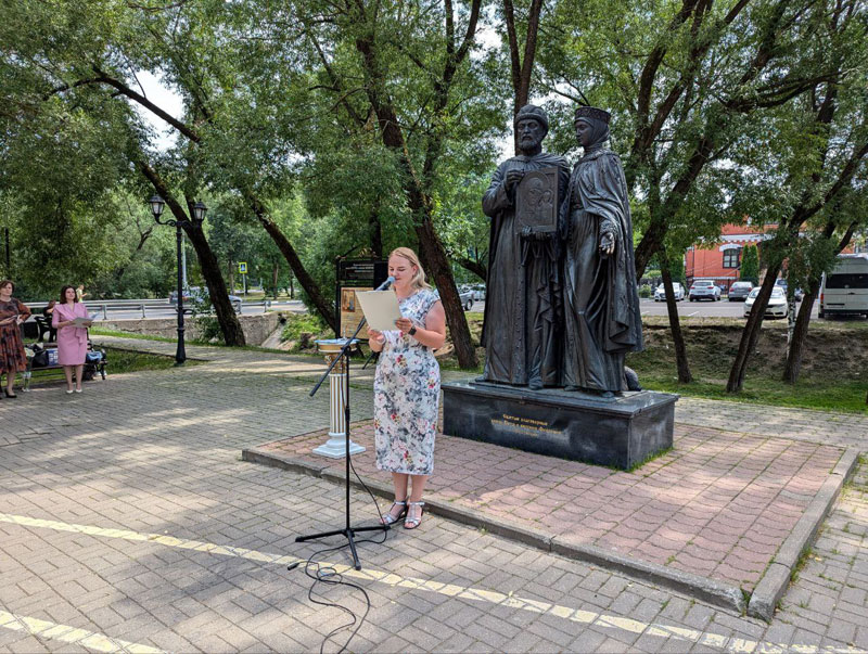 В преддверии этого праздника у памятника Петру и Февронии Муромских состоялось торжественная церемония бракосочетание Евгения и Татьяны Сурмач. Молодоженов поздравили Ирина Федорова - представитель отдела культуры администрации Сергиево-Посадского городского округа и Екатерина Кондратьева - начальник управления ЗАГС.
