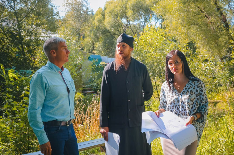 Заместитель главы Сергиево-Посадского городского округа Александр Желтов провел рабочую встречу с руководителем коммунальной службы Троице-Сергиевой лавры иеродиаконом Иосаф и волонтерами, на которой обсудили план благоустройства популярного источника им. Саввы Сторожевского у подножия монастыря.