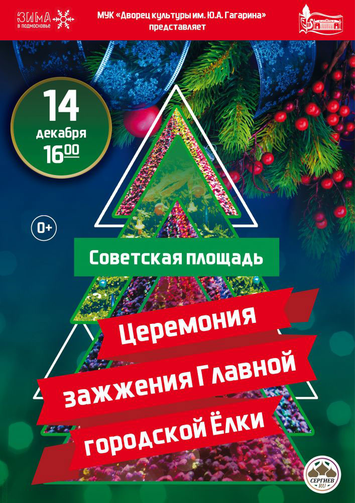 Главная ёлка Сергиево Посадского городского округа зажжёт свои огни 14 декабря в 16:00 на Советской площади!