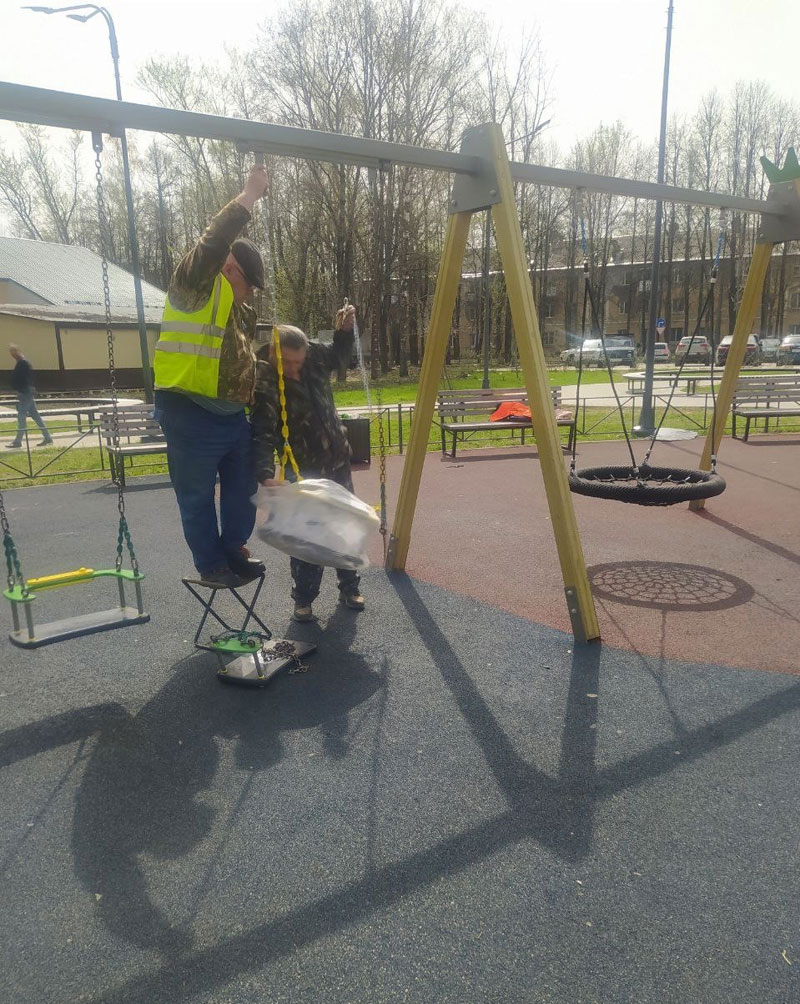 Во время осмотра обратили внимание на деформирование крепления качелей, оперативно вызвали сотрудников для устранения нарушений.