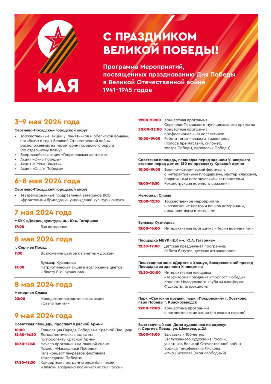 Программа мероприятий, посвященных 79-летию Победы в Великой Отечественной войне 1941-1945гг. в Сергиево-Посадском округе