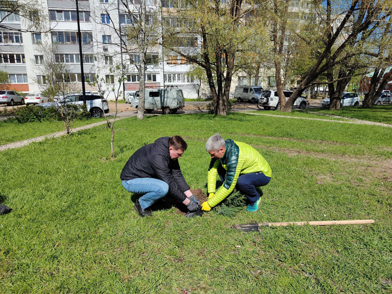 Сегодня заместитель главы Сергиево-Посадского городского округа Александр Желтов вместе с депутатом окружного Совета Сергеем Захаровым с благодарностью посадили можжевельник, переданный бойцами СВО, на общественном пространстве - бульваре Кузнецова.