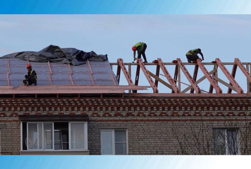 Работы по ремонту кровли идут в доме 20 на улице Бероунской.