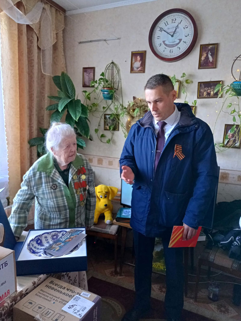 Это большой праздник свободы и мира, ставший возможным благодаря подвигу наших героев. Сегодня днём окружной депутат Сергей Максимов, начальник отдела социальных услуг Сергиево-Посадского Управления социального развития Светлана Ионова и агитбригада ДК Гагарина торжественно поздравили жительницу нашего города, участника Великой Отечественной войны - Моисееву Ирину Александровну с наступающим праздником. В прошлом году Ирине Александровне исполнилось 100 лет. Во время военных действий она трудилась на благо госпиталя.
