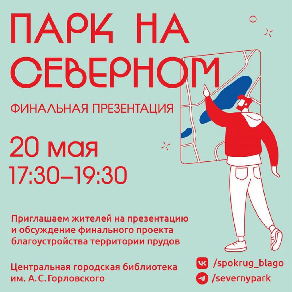 Администрация округа приглашает горожан 20 мая в 17-30 в библиотеку им. Горловского на презентацию и обсуждение финального проекта благоустройства прудов на Северном.