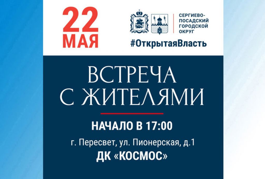 Администрация Сергиево-Посадского городского округа информирует, что очередная такая встреча пройдет в Пересвете. Жители, пришедшие на встречу, смогут получить ответы на волнующие их вопросы и предложить свои идеи по развитию округа.