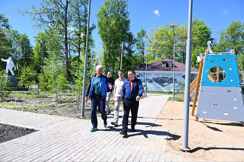 Александр Желтов совместно с Дмитрием Акуловым прошлись по территории парка "Константиново" с целью контроля за ходом выполнения работ.