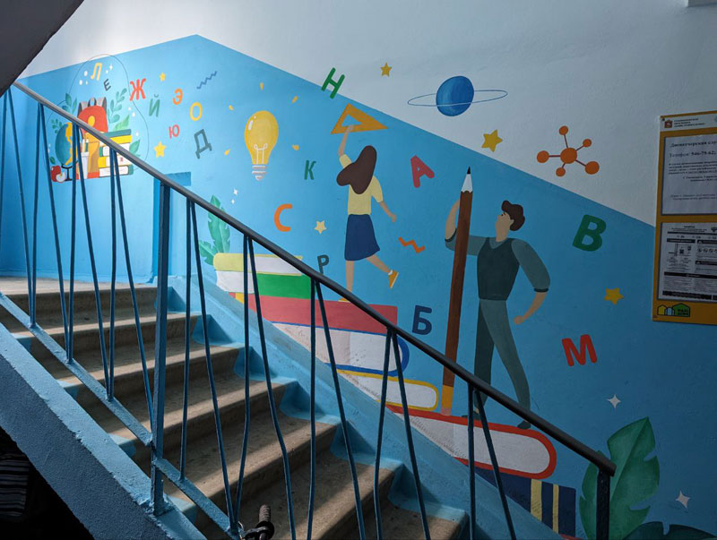 Разноцветные рисунки на стенах создают для жителей дома особую атмосферу и поднимают настроение всем вокруг. Депутаты отметили, что таких подъездов должно быть больше в каждом доме.