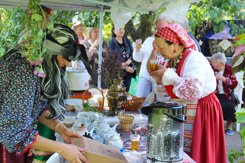 Особенно яркими в завершении празднества стали дегустация взвара из яблок на меду и чаепитие в гостях у Бабы Яги.