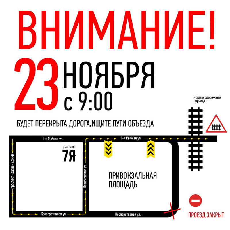 Внимание! Временное изменение схемы движения автотранспорта в районе железнодорожного вокзала!