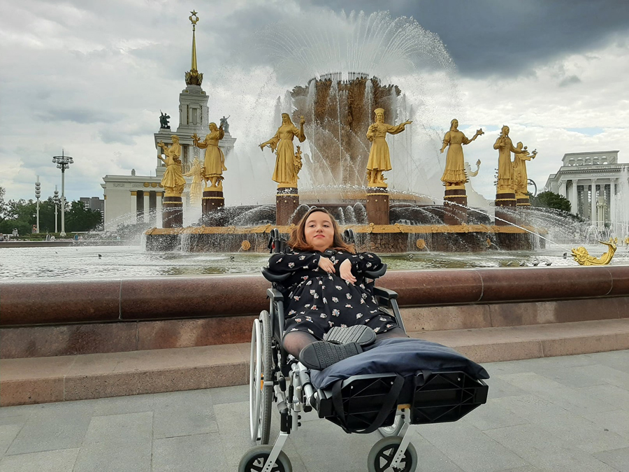 У нее артрогрипоз – генетическое заболевание суставов. Передвигаться она может лежа или полулежа в нестандартной инвалидной коляске.